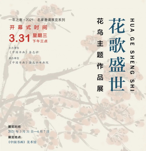 2021年3月31日下午三时,由《中国书画》杂志社主办、《中国书画》杂志社书画院承办的“一年之寄”2021年书画名家邀请系列展览——“花歌盛世”花鸟主题作品展在《中国书画》美术馆开幕。中国国家画院培训中心学术主持马啸、首都师范大学美术学院博士马晨溪,以及本次参展作者《中国艺术家年鉴》主编陈子游,北京林业大学美术研究所所长、艺术设计学院教授李汉平,《中国画艺术年鉴》副主编陆虹,李可染画院青年画院画家张玮,北京林业大学艺术设计学院美术学硕士牛健霖、赵苜言等嘉宾来到现场品茗、观展。凤凰视频、腾讯、中华网等多家媒体对本次展览进行报道。