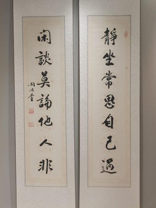 阎振堂是一位精通儒、释、道三昧的学问家,其中以中国书画研究最为突出。他六岁开始研习书法,在行书、隶书、篆书及草书上均有造诣,他的书法源于传统,功力深厚,博采众家之长,深得二王之妙。书法内容独特,多为自撰佳句,淳朴自然、雅俗共赏,使人读来赏心悦目。他把对收藏事业的挚爱融会于笔端,把对书法的追求纳之于心底,孜孜以求,融会贯通,形成了自己独特的书法轨迹。他以书法会友,临习或自己创作了大量书法作品,参加了众多书法展览,受到各方的赞誉与好评。