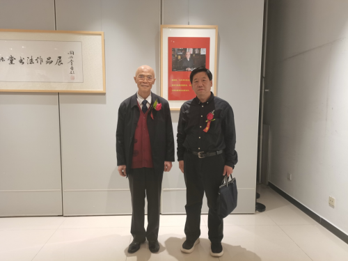 新华在线网特邀总编朱长云先生应邀出席开幕式与阎振堂先生进行了交谈,祝阎先生书法作品展开幕式圆满成功!