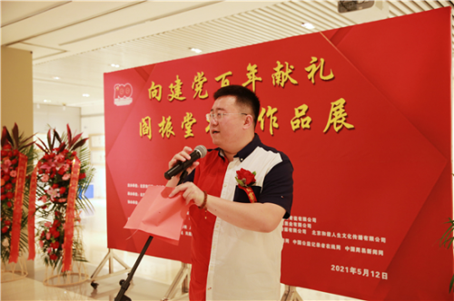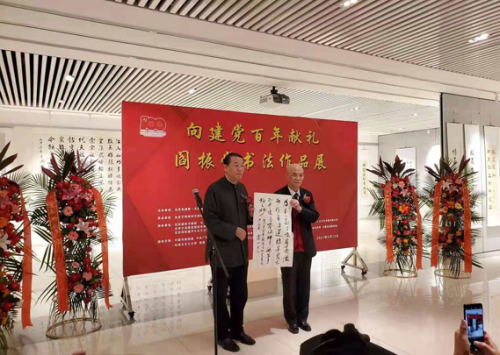 中国文联原副主席、中国曲协原主席刘兰芳女士致辞并宣布向建党百年献礼闫振堂书法作品展开幕!