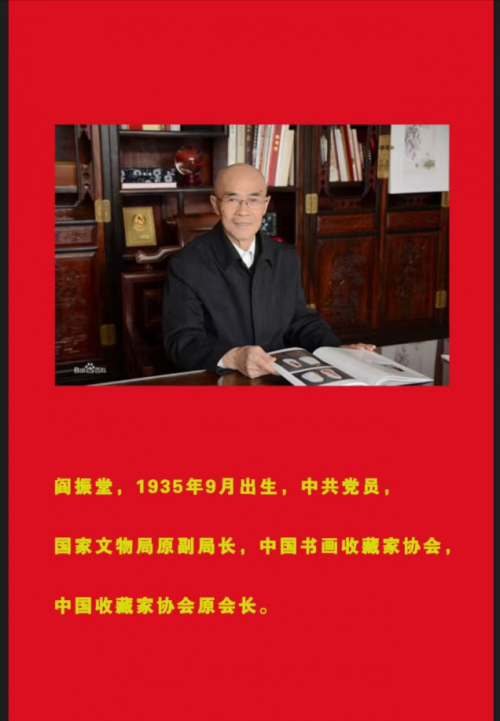 阎振堂、笔名长通、印真、陶然,1935年出生于山西文水,原国家文物局副局长,中国书画收藏家协会、中国收藏家协会原会长。