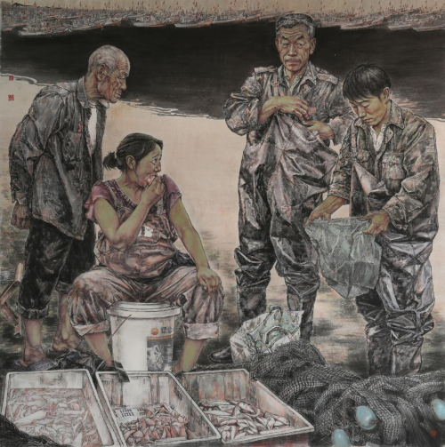 《靠海》183×181cm 2014年入选全国第十二届美展 2014年 笔墨功底在刘艺青先生的作品中已是有得到了实力印证,因此对于刘艺青先生本人而言,属于笔墨的技法层次已经是不再重要,真正重要的则是他对于画中人物形象的精神赋予和意化蕴藉。当然,这也是可以从另一方面上来理解,那就是经由他所创作的众幅人物画作,都是早已超越了单一的外在构型表现,取而代之的则是一种可以见得人物生命质感和文化思考的精神指向!画风继承传统的文人格调,写意丰富而又独特,赋神饱满而又自然,众幅人物形象的表现语境可谓皆是个性鲜明!
