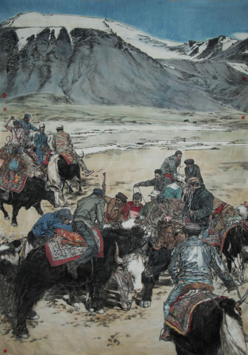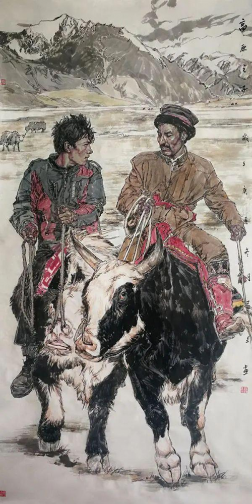 《欢腾的帕米尔》145×203cm 2020年入选第四届中国民族美术双年展 2017年 对传统文化和绘画传统的学习,使画家掌握中国画基本的绘画技能,养成高尚的人生观和艺术观,是成就中国画家的基础,也是每个中国画家走向成功的必由之路。画家心性的自我发现和深入挖掘成就的往往是画家的个性化情感、意境传达和个性化的绘画语言。曾受业于中央美术学院国画系的画家刘艺青,无疑打下了坚实的传统绘画基础;性格纯朴敦厚的他,选择了写实风格的人物画创作,使其艺术语言与其心性同构。以上两点,已构成了刘艺青的绘画艺术走向成功的坚实基础。