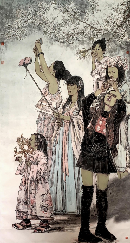 《北京·2022》200×240cm 2021年 由于敏感于生活并深入到生活的深处,刘艺青常常被其所表现的人物所感动,致使他在其作品中倾注十分的感情,这种感情融入笔墨成为感人生动的笔墨,这种感情融入形式则成为有意味的形式。虽然从大体上看刘艺青的绘画选择的是写实风格,但由于融入以情感为核心的形式意味的探索表现,其作品在表现对象的品格和画家自我心性之间找到了微妙的关联与共鸣。品读刘艺青的作品,往往会被其入微的细节刻画和某些精巧的画面结构处理所打动,这一方面得益于其扎实的绘画功底,另一方面更得益于其对生活体察、感悟的深度,正所谓“看得多远,则画得多远”。