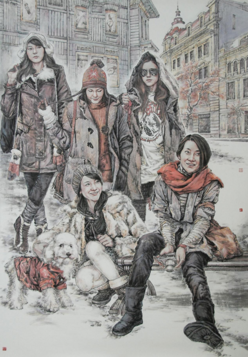 《冬天里的童话》225×150cm 2011年获时尚丽人中国画展时尚绘画特别奖 2011年 走进生活 艺术长青 ——刘艺青绘画艺术略评 刻一 纵观中国绘画史我们得知,要成就一个中国画家,至少需要从三个方面去进行艺术修炼:首先是对中国绘画乃至中国文化传统的学习;其次是画家心性的蒙养与挖掘;再次是对生活的感悟和历练。