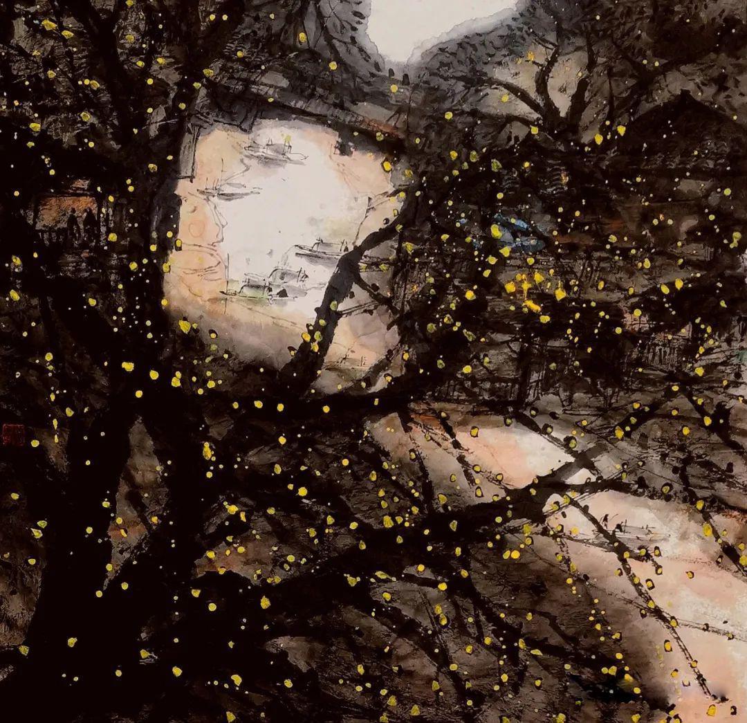 黔东南民族的温润与自然、和谐的水墨精神 读陈明春的画,我们会想到黔东南这些传统村落的名字:黎平县的“中国最大的侗寨”肇兴古镇、黄岗侗寨,地扪、登岑、述洞、铜关、高进……榕江县的宰荡、大利、归柳、晚寨……从江县的高增、增冲、加榜、岜沙……雷山县的西江、朗德、乌东……这些村庄藏匿于深山老林,民居建筑以吊脚楼为主,有小桥流水的韵致。因为陈明春带学生采风和自我情感追寻的原因,他的足迹遍及这些村村寨寨。 树木在陈明春的画里总会占据着不可或缺的地位,如同这些树木在黔东南村寨里的存在一样。这些树木甚至可以说是生活在黔东南各民族精神的象征,村寨如同树木一样生长,生命如同树木一样坚强,繁衍如同树木一样遍山遍岭。