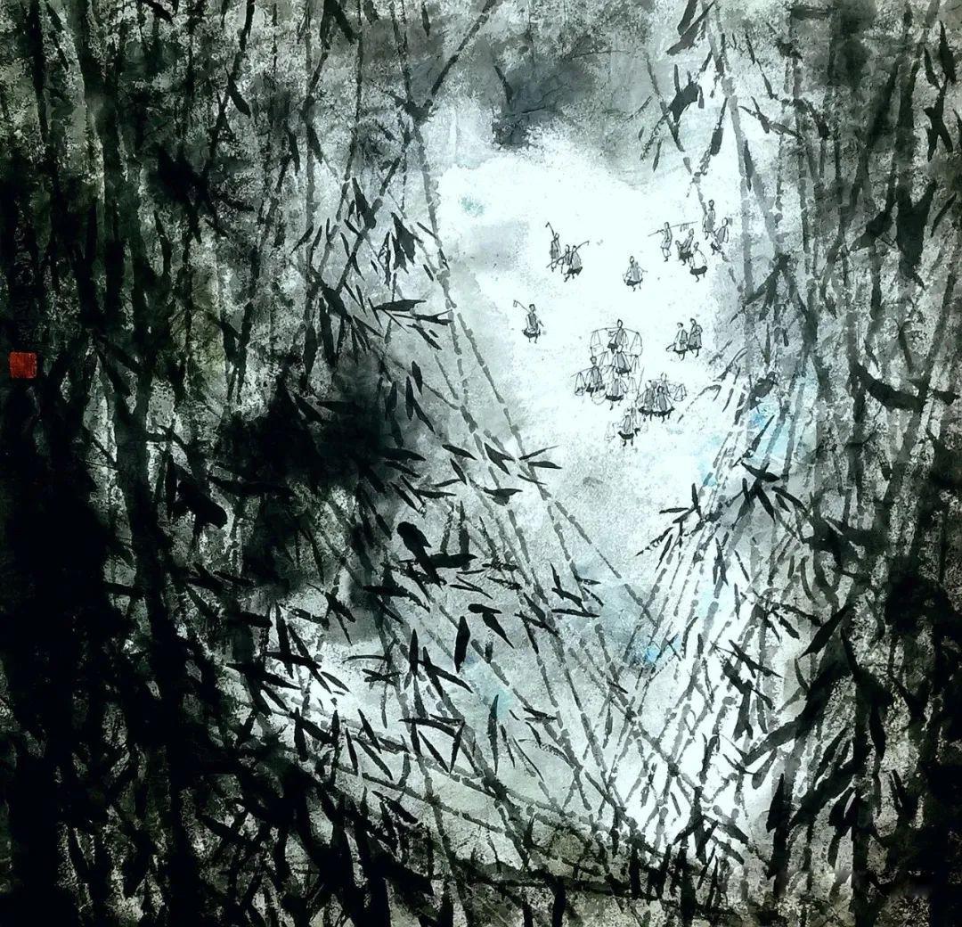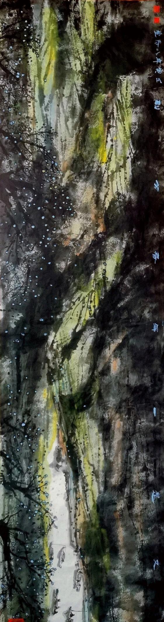 《春天的时候》 读陈明春的画,恍然进入远古的森林,又分明沐浴在新鲜的阳光里,其实我们在画里看到宁静与和谐,也分明感受到张扬的生命。 对于陈明春水墨探索的阐述,或者更应该放在全球美术视野中以及当代审美的倾向里来加以批评,更深层的触发我们面对作品的情感,看到一颗无法替代的深沉创作的鲜活灵魂。人类艺术的发展无不是向着新奇、新鲜的方向向前进展的。水墨的变革与发展对于每一个探索中的个体来说都只是大潮里的一粒水珠,这也显示了任何一项探索和变革的艰辛,同时代存在的探索与变革汇聚着集体向前的勇气。