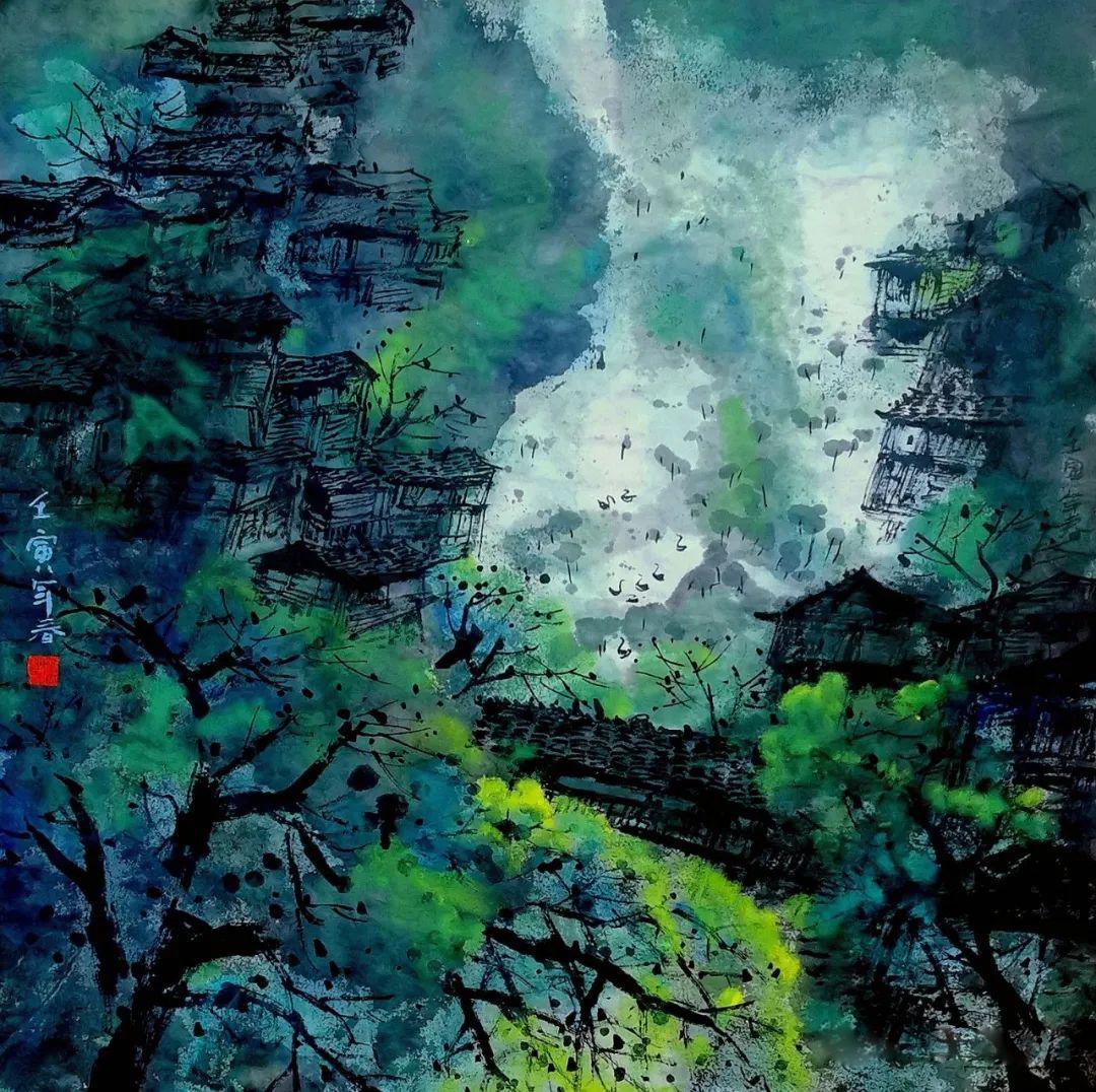 《春风春雨》 苗乡侗寨水墨行 ——陈明春水墨探寻的精神解析 杨忠(侗族) 序章 在今天中国的美术界,有很多艺术家从黔东南这片神奇的土地上吸收过营养,也创作了许多优秀作品,这些作品通过艺术家本身的艺术视角和对于多重生活环境的对比获得灵感和创作激情。生活在本土的艺术家对自己生活周围的山山水水、人文情怀有着不一样的理解和认知。陈明春一直生活、创作在黔东南这片土地上,他对这片土地上的人文和山水的理解与认知其实在他的生命和生活中成了不可或缺的那部分,这片土地之于他亦如同空气和水一般——身在其中、生在其中,与这片土地和这片土地上的人、文化和山水血脉相连。行政工作的繁复让他选择更加接近一气呵成便能写生、创作的水墨作为倾情美术的新的着力点。历经艰难的学习与探索终于凝炼出属于自己的笔墨风格和面貌,他选择的淋漓酣畅的水墨与黔东南温润柔美的地域性格得到了完美的契合。