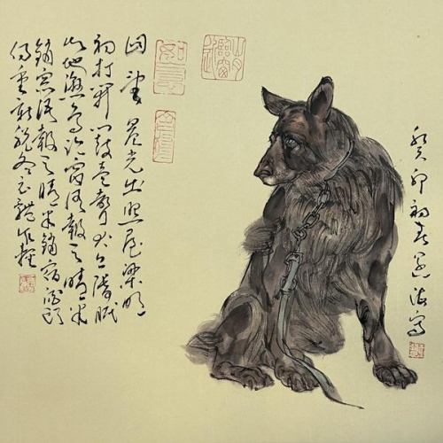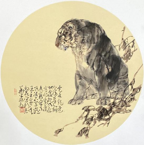 如果我们进一步追问王阔海先生之所以游刃有余于不同题材和动物形象,从容不迫信手拈来,除了扎实的功力、艰苦的探索、中国画的使命感和担当之外,就要回到画家本人的开悟能力。王阔海先生感言,自己从五十七岁悟道,悟道之后拿起毛笔来就能通天,也即打开了老子所言“玄之又玄”的“天道”之门。一旦敞开了这道通天通地之门,则无有挂碍,做什么都顺其自然,自然而然地为人处事,自然而然地书写。用笔看似张扬,实则含蓄,放笔于动,而意归于静。把动和静的辩证关系做到了极致。