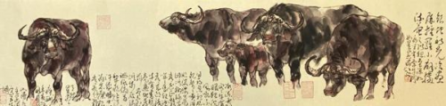 基于王阔海先生的独特创造,我们完全有必要站在中国画史的高度,对王阔海先生的鞍马动物新画法与徐悲鸿(画马、狮子等)、刘勃舒(画马)、刘继卣(画虎)、刘奎龄(画虎)、李可染(画牛)、吴作人(画骆驼)、张善孖和张大千(画虎)、冯大中(画虎)、胡爽庵(画虎),黄胄(画驴子),等前辈画家的作品进行相对详尽的比较研究,以此为中国画坛提供可资参考研究范例,然而限于篇幅有限权且略过。