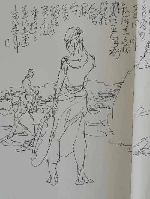 纵观这一系列作品,我们可以从中发现和读出王阔海先生以勾线为主的中国画素描,作为一种文人画的新画法那种生动活泼意犹未尽的韵味。当代的学院派,笔墨为素描服务,把笔墨画成了素描,笔墨跟着素描走,完全背离了中国画的本质。王阔海用中国画素描为中国画的笔墨服务,成为当代素描用于中国画笔墨的开拓者、先驱者。在表现手法上,诸如在线与面的结合上,哪些地方行于线?哪些地方进于面?与前人有着明显的不同。