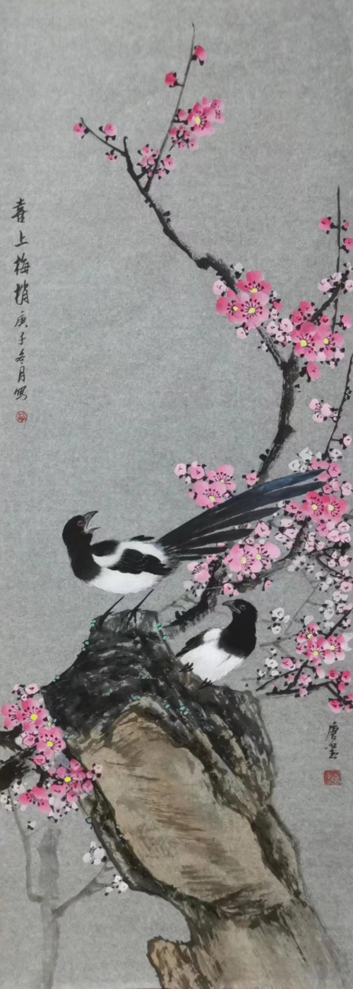 兼工带写修秘宗,独享一题成大家。唐老师除了月季花风格独特,事实上他的画题与画风博涉多优,有非常之广的创作题材空间和艺术魅力表现渠道。画龙梅与雪争春未肯降,必要胜出一段香!空间很大气,审美很磅礴,唯有心修在巅,才可以画梅写龙篇。画水禽、翎羽花鸟作品,同样把随类赋彩、气韵生动的画道内涵表现得相当洒脱。一画一世界,一题一精神。他以严谨的态度作丹青,以卓越的行动弘扬文化,其名大著,其功大成!是画坛钟吕,成为令人敬仰的文化人物典范! 中国书画频道著名书画评论家 刘明印 2021年4月8日于北京