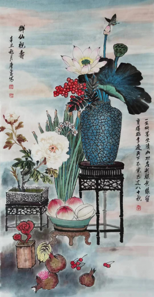 兼工带写修秘宗 独享一题成大家 ——记著名画家唐玺 唐玺老师作画法度精研,极有传承古风水准,可以把传统画法表达得遂心应手,这从他画的松鹤映日图可证其功。再者,他画画又有笔墨当随时代的创新,起笔落笔可作盛世之歌,尤画月季个性独特,大有盛世国运的寓意。他的月季作品富有精气神,在画坛独领风骚,有若形神兼备、尤贵于神的魅力表现!当一位画家的画法扎根于传统,画技又可赋歌时代之际,那么他肯定会成为丹青文化的弘扬者。这是唐老师在画坛有专业影响力,在文化界有审美号召力的重要原因。