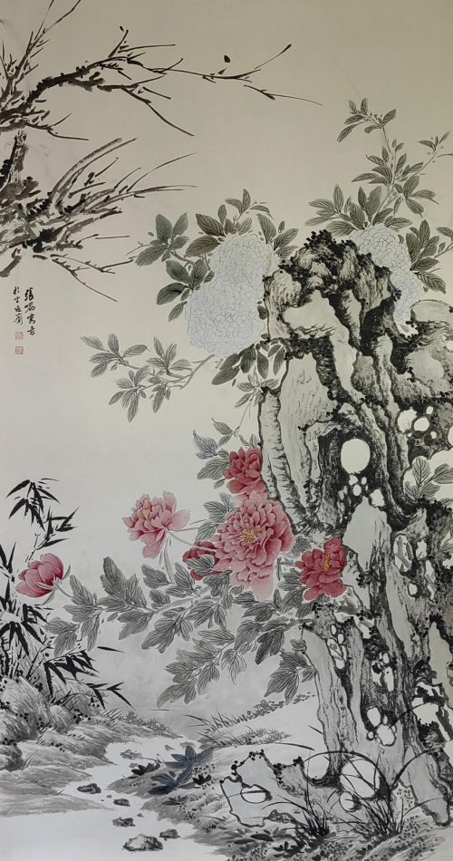 中国绘画有其严格的程式化,程式化同样是一柄双刃剑,它既是绘画造型的一个捷径,又是遏制造型艺术进一步深化的东西。张岩是一位书画艺术的继承者,同时还是一位传授者,他的绘画技巧一方面要让学生学会,同时也要适合自己的艺术创作。所以,他只能在这两者之间找平衡。在学与教的过程中,张岩的绘画逐渐形成了既面面俱到,又主体突出的画面格局,他的绘画在技术性上达到了娴熟的同时,又极度张扬了自我精神的表达,他否定了作为传授者的重复性和单一的程式化,可定了一位艺术家的丰富性和创造性。在当今绘画艺术教学中,这是张岩的成功之处。