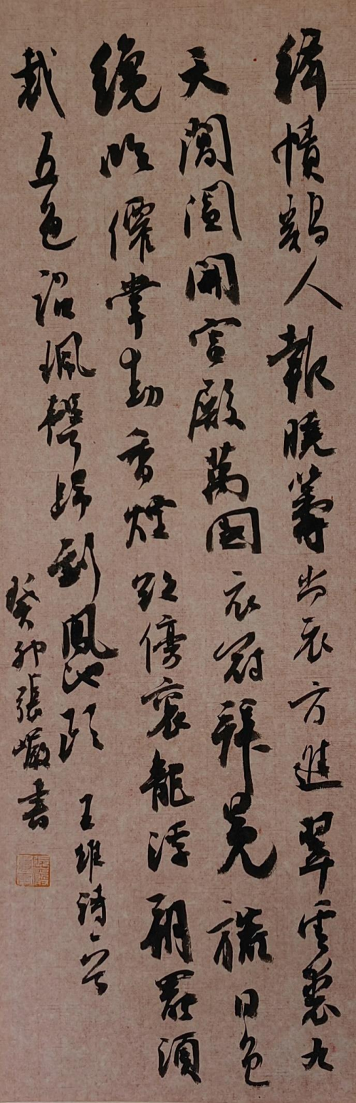 修身为一切艺术造诣之本。身不正者,不足以谈艺术之事。书法有抑扬顿挫,人性有温热寒凉,书法的律动和人类的情感变化是一致的。人们对书法艺术的尊重很容易转嫁在书法家的身上。在民风淳朴的单父故里,张岩伴随着他的书法艺术一起成长。张岩的绘画取法于帖学,在行云流水的基础上得敦厚精美的沉着。这也暗合张岩为人处世的品行。悟性和聪颖是张岩绘画艺术的物理性因素,对于书法艺术的修炼正果则是他绘画艺术的化学性因素。他的书法线条是他绘画中最富有诗意的因素。