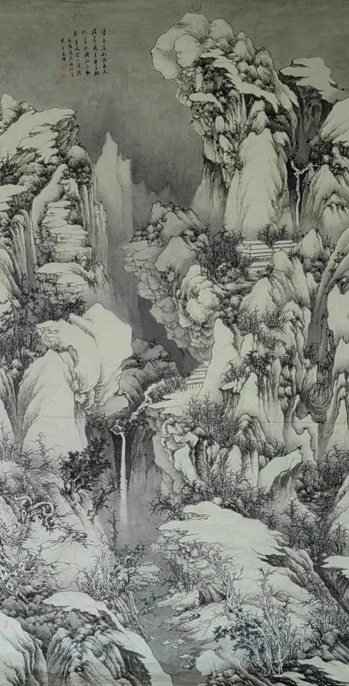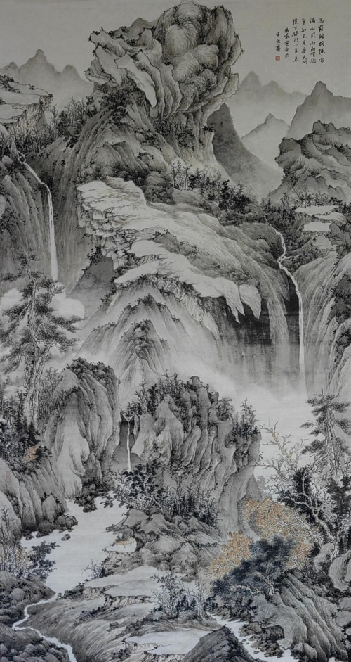 完全可以说,一个优秀的画家内心深处都有古典主义的倾向,张岩同样也是一位古典艺术的膜拜者。我们看他今天的绘画,古典主义的创作方法和精神指向,洋溢在他的画面上,有一种静美的、纯粹的、理想化的艺术境界,似曾相识而又久而不遇。他从《芥子园画谱》产生的年代而上溯,学习宋代绘画,荆浩、关仝的苍茫雄浑,董源、巨然的氤氲浩淼,他都用心体会过,心摹手追,师法学习,并游历太行左右,大江南北,师造化。