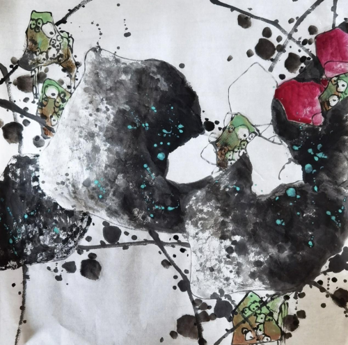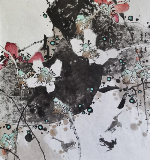 我们还谈到了现代网络用数字化创作水墨花鸟画的问题。他认为,不同时代有不一样的艺术氛围和创作手法 ,这是应当值得关注的焦点。但无论如何,艺术都离不开深层次的文化底蕴和丰厚的人文语境。中国画有自己的章法、布局、神韵、具象、线条、旋律等,在表现手法上以隐喻为主,以象征主义来传达旨意,体现主题,而数字形显出来的绘画肯定是千篇一律,甚至会出现怪异现象,这点必须要避免。总之,在新时代的变革中,要化古为今,推陈出新,必须在“妙悟”自然的基础上,只有做到人文与自然,思想与情愫 ,宙宇与灵魂的相连互动,浑然相融才能达到至高境界。这样才能使传统写意花鸟画彰显出浓郁的时代精神,让时尚潮流的独特气息扑面而来。 王荣昌老师的水墨气象,止于至善,它蕴含着厚德载物的哲学精神。