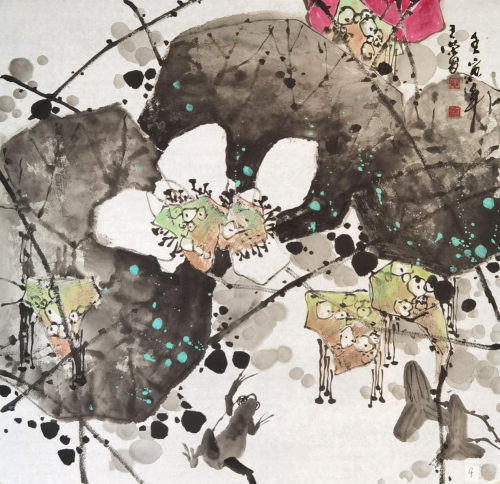 王荣昌的水墨气象 何进 仲秋时节,经朋友介绍,我认识了著名国画大家王荣昌老师。他精神矍铄,和蔼可亲,谦逊低调,我们一见如故,颇有倾心至诚之感。他的荷花系列作品以笔墨舒展,技法娴熟,天人合一,妙景天成著称。他送我一本中央美术学院出版的新日历,封面用的是他一幅纵横洒脱,风神超逸,富含多种风格与技巧,心灵与自然融合的荷花佳作,既有传统水墨画的独特气质,又在妙曼的艺术时空里留下了唯美的,浓淡相宜而又深刻的自然玄奥与人性真谛。