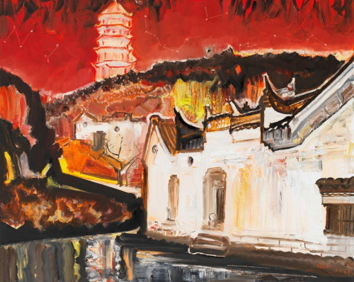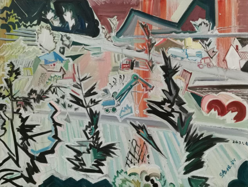 《从凤凰美术馆看窗外之二》油画 60×80cm 2023年