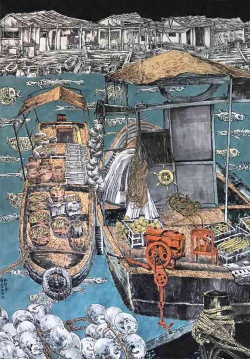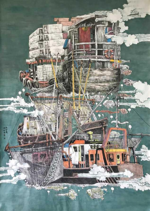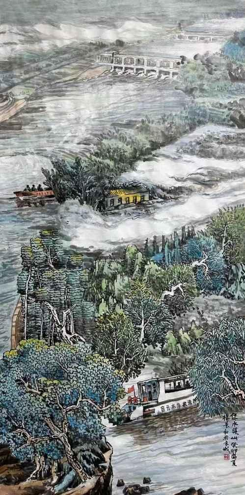 《满载而归》240×190cm 开宗立派写奇幻 外师造化济心源 ——记著名画家杨景和 现实与幻想是艺术思维的两面,能够把这两面统成一体,指导自己的美学实践走上“奇幻山水”的创新路径,并且大获成功,这是画家杨景和中国画创新的惊艳成就。他以扎实的山水写实功夫,以及非凡的艺术幻想才华,让传统山水介入奇幻的魅力,成为奇幻山水一派的发起人创建人。他以独特的山水风格和创新精神,展现了中国传统绘画古今相续的新魅力和新活力。