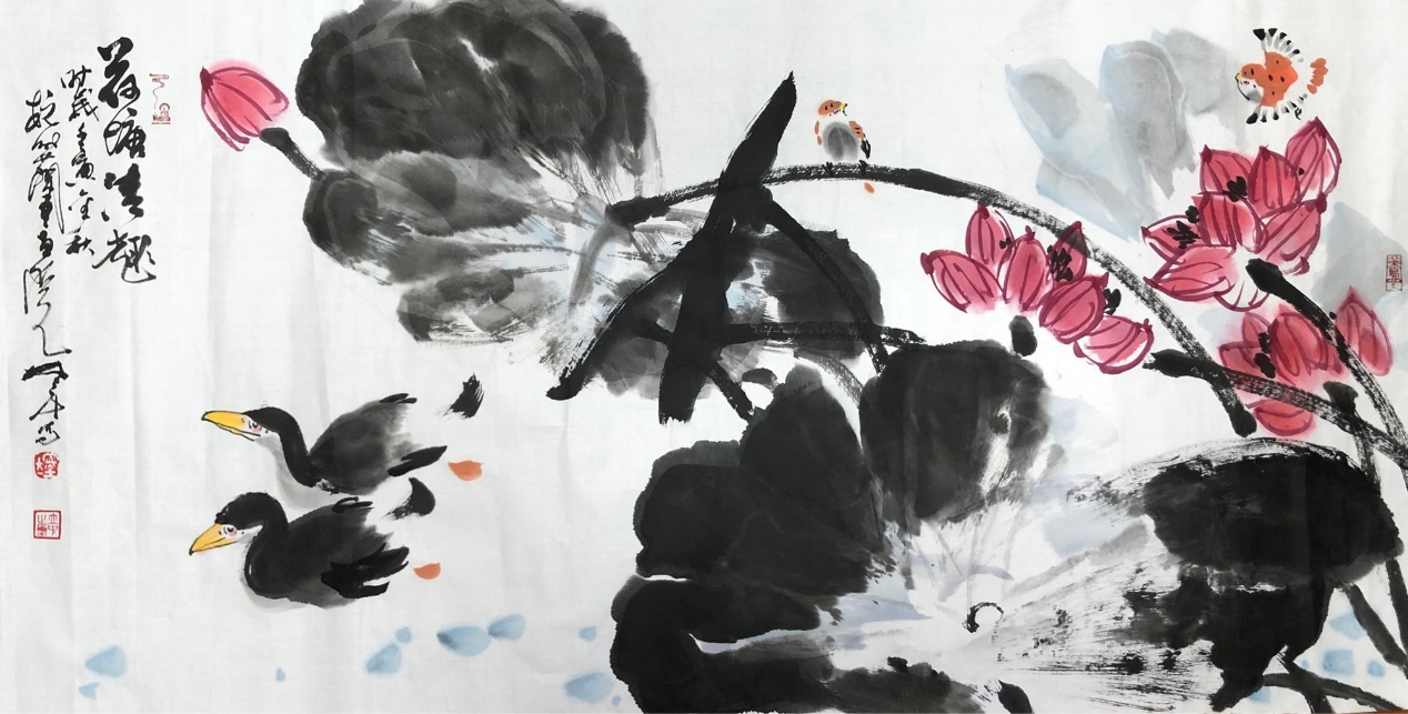 《荷绿花香影入塘》纸本 48cm×680cm 2022年 林立中 |