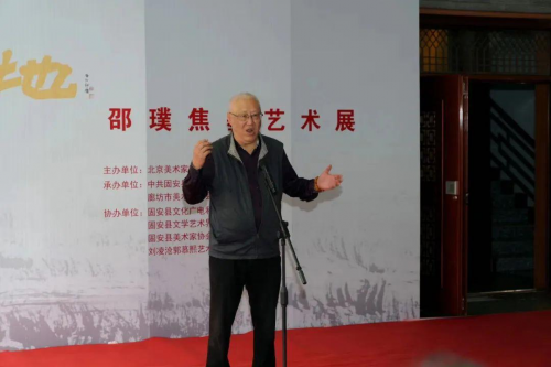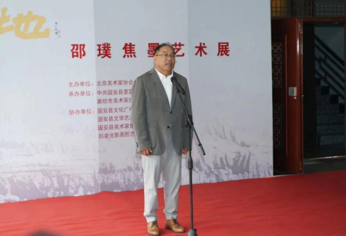 此次的画展主人邵璞致答谢辞 画展开幕前夕,由著名画家、中国美协理事、北京美协副主席、博士生导师王界山担任学术主持,中国文联原副主席、第十届中国文联副主席、原中央电视台台长、光明日报总编辑胡占凡,中国美术家协会副主席、中国美术家协会原秘书长徐里,中国美术家协会理事、中国美协综合绘画委员会副主任、北京美术家协会副主席李耀林,中国美术家协会理事、油画委员会副主任邵亚川等文艺学者与专家组成研讨组,围绕邵璞先生的艺术成就和作品面貌进行了深度的研讨。