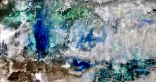 仿宋王希孟《千里江山图轴》之三 226×138cm 绢本青绿山水 卲震山先生的泼彩画品格高逸,现代感强,画面文气,具有含蓄、抽象、意象之美,可谓是『真、淡、静』。所谓『真』,即是以身相许,以诚相待;所谓『淡』,即是游离于空间之外,超脱时间之际;所谓『静』,即是心安神宁,清净无物。如他的『问道黄山』系列作品既是对前贤的致敬,也是对自然的超脱,更是对自己道心的叩问。他的《空谷传声》《虚驾千寻上,空香万里闻》《寂静幽谷》《高卧太蒙云》《宇宙洪荒》,以及『空纳万境』系列作品是对宇宙、对太虚之道的追寻。而他的《梦回丝路》《丝路传说》《密林仙踪》《云水禅心》等作品中对于敦煌壁画元素的大胆运用,让人有梦回前朝的时空之感。但不管何种题材,在他的画中,常会有一种『空山不见人,但闻人语响』的感受,观者只能感叹『只在此山中,云深不知处』。 自号青龙道人、海上漫士、紫金山樵的卲震山先生不为近二十年来蓬勃发展的艺术市场所动,以画自隐,不求仕进,甘坐画坛冷板凳,坚守寂寞之道,但要知道,道隐无名,隐者有道。(本文作者:李向阳 系《荣宝斋》期刊主编) |