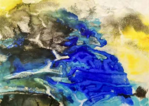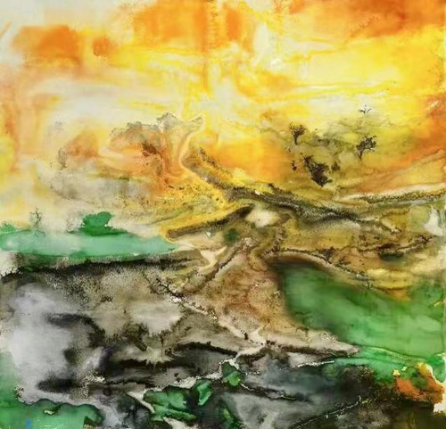 《春天的旋律》之二 96×98cm 纸本 邵震山先生清楚地知道:『国画艺术是我中华民族优秀传统,历代名贤遗留下了许多不朽名迹,他们在不同时代,用了毕生精力,积累了许多艺术经验。我们要把这些丰富的经验、高超的技艺学到手,再经过自身的艺术实践中运用、加以发展丰富,逐渐形成自己的风格传承下去。这是我辈的责任,也是一生的事,必须潜心努力,不下苦功夫不行。』为此,一九九三年,三十岁的他入南京艺术学院学习书法、篆刻,兼修国画,并定居南京。一九九五年,他移居上海,进入上海中国画院、刘海粟美术馆专研山水、花鸟画。二○○五年,他隐居金陵紫金山麓『八极堂』潜心研究历代山水、花鸟名作。二○一二年,他北上先后入清华大学美术学院、北京大学艺术学院、中国人民大学继续深造,主研北派、近代山水画。
