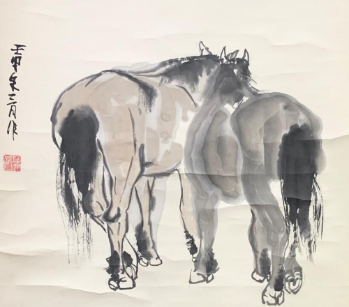 邵璞于刘凌仓郭慕𤋮艺术馆作,张永红题书 郭运德: 中华文化博大精深,传统绘画源远流长,但焦墨却属于国画技艺的一个新类别。邵璞知难而进,知不可为而有意为之,此乃诗人的天性使然。 焦墨的枯笔淡墨与诗歌写作的咬文嚼字、字斟句酌是一致的,惜墨如金、简洁洗练,是中国诗歌与绘画抒怀达性所共有的文化符号;以虚代实、计白当黑,符合中国传统文化含蓄蕴藉的审美理念;以少胜多、以一当十,既是诗画艺术以一粒尘埃窥宇宙全貌的魔术般创作手段,也是成功商人以最小代价博取最大效益,让利润最大化的拿手好戏。 在喧嚣的尘世中找回心灵宁静。从邵璞的作品中能清晰地读出“静幽”二字,所谓“静”是指画中呈现的恬淡、静谧与沉静,所谓“幽”是指画中表露出的内敛、清幽与淡雅。邵璞把诗人观察世界、吟咏自我的方式用于绘画,在物我两忘的心境中抒写画中的无我之境。画面中看不到商场犹如战场的激越,看不到人世间恶俗的狰狞与浮躁,甚至也不再是简单的诗和远方,而是采菊东篱、悠然见南山式的闲适与自得。从喧嚣的尘世中跳出来,静观默思、信笔写意,个中没有丝毫挣扎的痛苦,没有任何张扬的得志,有的却是沉静笔墨洇染中的自然与自我回归,是渊深朴茂、诗画交融中的清腴淡远。他在宣纸与笔墨的对话交汇中让躁动的灵魂找到栖息的港湾,给予诗意的寄托。观摩他的画作,仿佛让人置身于清新秀雅、宁静澄明的山林,远离了都市喧嚣与嘈杂,在扑面而来的田园气息中获取寄情山水的林泉之乐;总能让人寻觅到童年岁月曾经的青山绿水记忆和不绝如缕的淡淡乡愁,瞬间进入清静无为、与世无争的佛系状态。这既是经历几十年飘泊奋斗按下暂停键之后的舒展喘息,是绚烂之极归于平淡的心态写照,更是艺术对快节奏、强压力生活状态下普遍化心灵迷失的某种救赎。 在固本之外尝试出新。山水画是中国传统绘画中最重要的样式,焦墨山水当然离不开历史的传承,只不过它的传承却是在传统的基础上做减法。邵璞的焦墨以简单的墨点、线条和洗练的笔触勾勒自然山水,他不再有张仃先生笔下那种挥之不去的焦虑与压抑,只是单纯地在“畅神”与“澄怀”中,追求自我的“天人无际”。他用散点透视的手法状物抒怀,但也偶尔加些焦点透视,用深浅不同的墨迹点染出山石、树木、水流的结构状态和明暗关系,但并不改变整个画面静水流深的静态格局。邵璞尝试为焦墨山水“随类赋彩”,但他画作的设色却不受客观因素限制,总是以虚代实、以色貌色,目的在于自由自在地放飞心灵、表达意念,敷色仅仅起着衬托情绪变化和辅助气氛渲染的作用。另外,邵璞画作通常以左笔题款,且题款不题名,画中不见“泰山胜景”、“花开宝贵”、“旭日东升”之类的常见名谓;他是诗人,但不给自己的画作配诗,而是题写名言警句,诸如,“企者不立 跨者不行”、“通而不流 猛而不暴”、“盘山石壁云难度 古木苍藤不计年”之类,让画作呈现出与众不同的特征。古人有“潇洒风流谓之韵,尽变穷奇谓之趣”之说。 邵璞先生的绘画是诗意山水,是文人画的杰出代表。如何将诗性通过笔墨展现在画面上,是特别难的一件事。而邵璞通过枯笔渴墨,通过自己的笔墨技法,将苍茫厚重、古朴禅意的境界完美呈现。