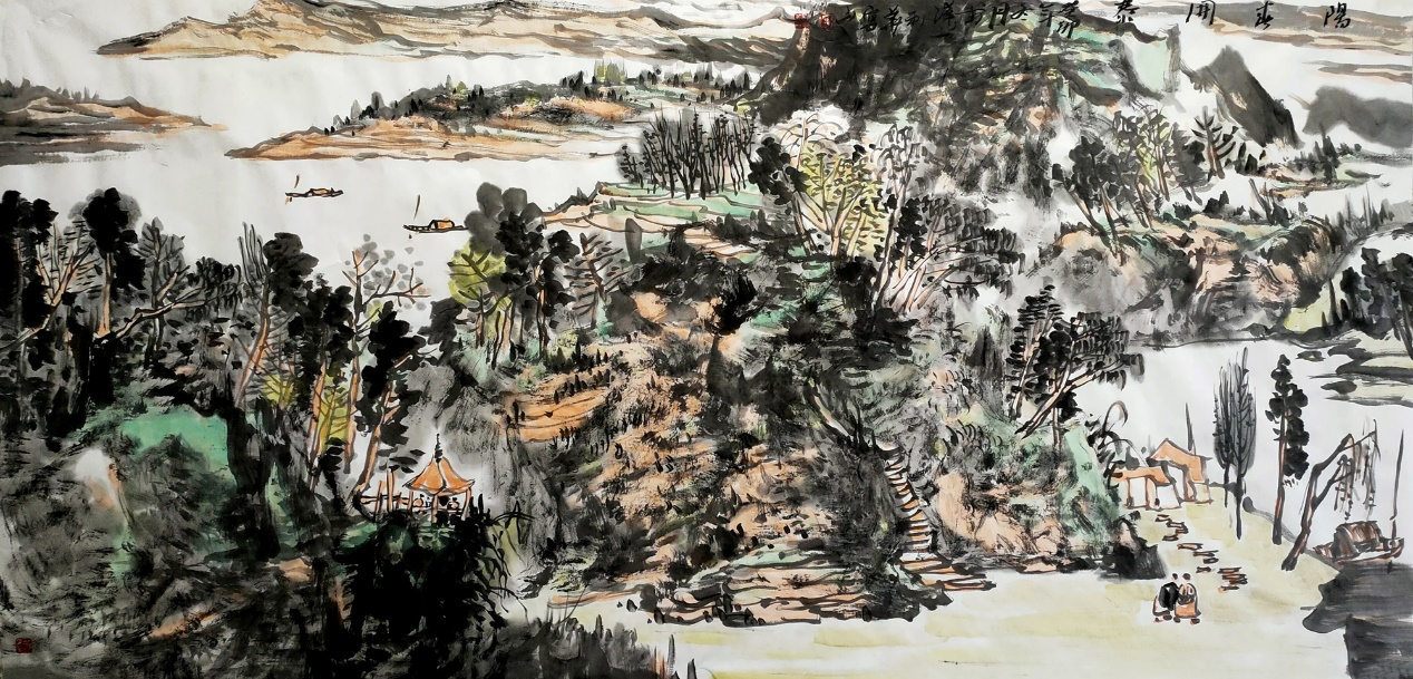 倪利华追寻的意境,是承继传统文人画,并与新时代背景下出现的新气象紧密结合,创新中扬弃腐朽的东西,《晨曦》如炬,耀眼呈现。啊啊!吾泱泱中华五千年之文明,是画家取之不尽用之不竭的法宝。画风的调整,是他内心深处对美好世界的新认知,对梦幻笔墨的新组合。从芸芸众生的世间,唯有听从内心的召唤,作品才能源源不断创造出新的佳构,产生新的魅力。 癸卯国庆节曾凡国写于荆州