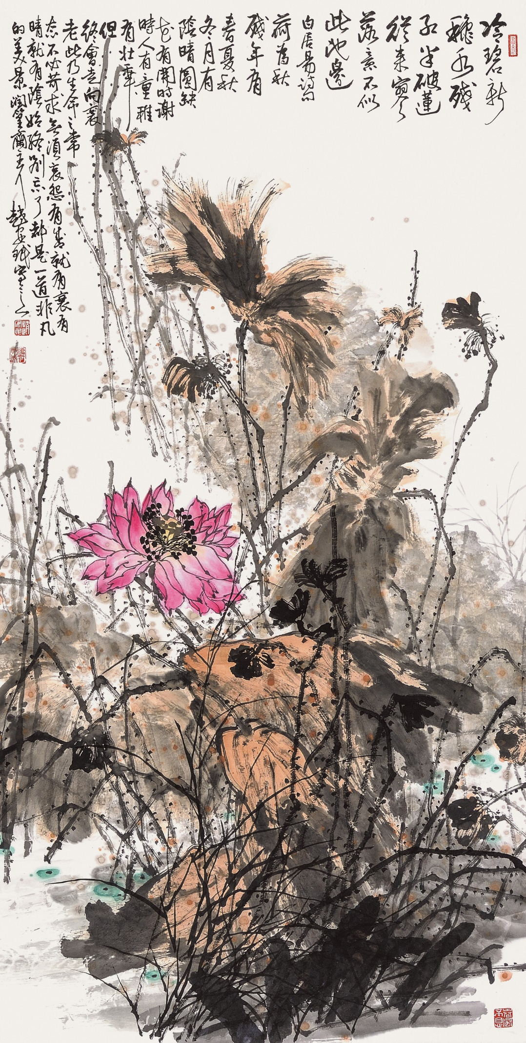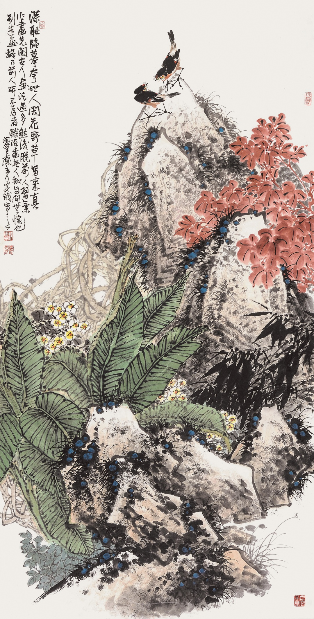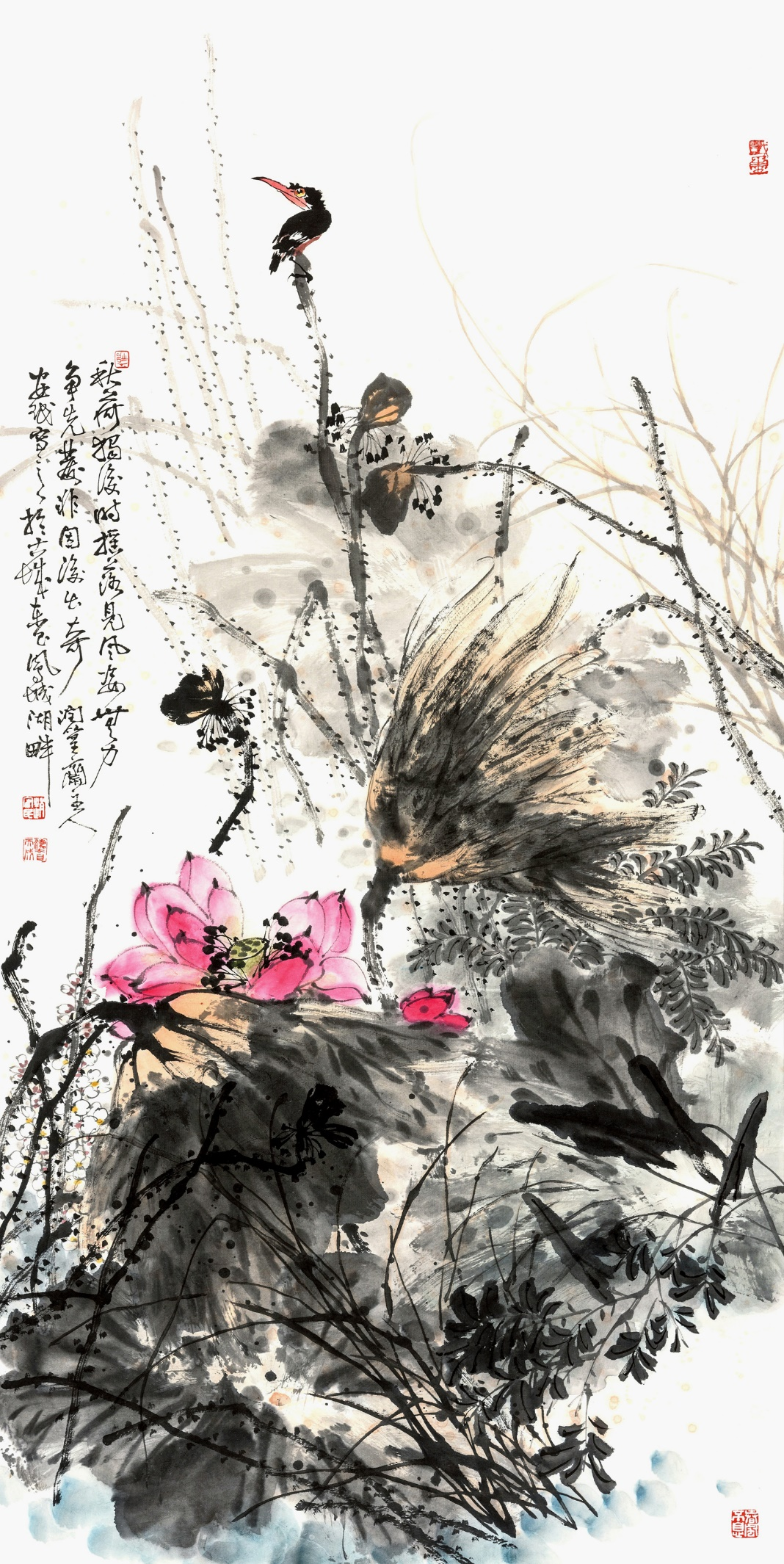 赵安民多年坚持利用空闲时间把自己所见所思之物勾画成图稿。有时为了获得满意的构图,他会不厌其烦地修改草图,直至满意方才动笔创作。他对布局、境界、笔墨形式等方面缜密思考、精心构思,在求大势的同时也注重精妙的细节处理,使画面整体十分协调。他还善于根据不同的描绘对象进行大块面的留白,使画面形成空灵、简远、虚静的艺术效果。他的花鸟画题材广泛、内容丰富。山石、树木、芦苇、荷塘、花鸟、草虫、溪流、藤萝等都是他的描绘对象。他坚持以人民为中心的创作导向,深入生活,扎根人民,到大自然中体验生活、观察生活。他的花鸟画注重传统与时代相结合、山水与花鸟相结合、工笔与写意相结合、水墨与重彩相结合、抒情与写意相结合,把物象提升为心象,把形象转化为意象,使画面的精神性和思想内涵得到进一步升华。 ![]()
