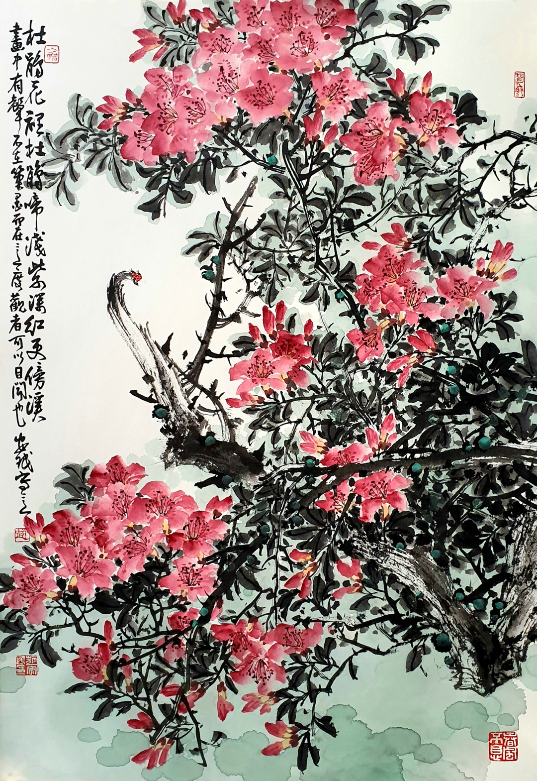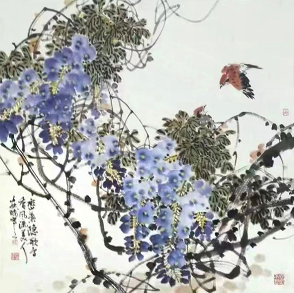 画家:赵安民,1958年生于山东高唐。山东省美协主席团成员、花鸟画艺委会副主任,原聊城市美协主席,东昌书画院院长,山东画院院务委员,山东当代花鸟画院副院长。作品曾多次入选全国性美展并有获奖。