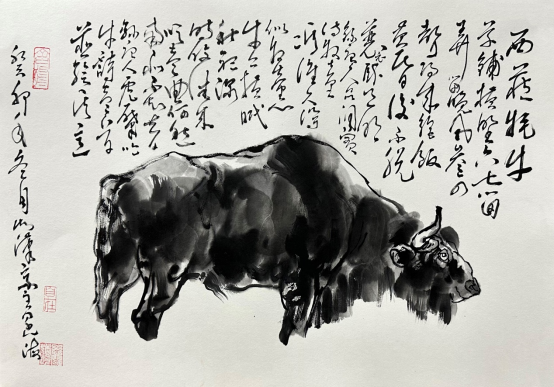 对此课题有的则可能麻木无辩:常于无佛处称尊,自以为大学毕了业:造型过了关;笔墨随了手,展览得了奖,誉满普天下,功成而名就,术界称权威、业界是头头,贪图虚名而盲目自信,便飘飘乎想羽化而登仙,自以为是大家、专家、实力派画家,但在古文人画面前难称其大,在传统文化面前缺乏应有的实力,终经不住历史的检验,其作品位不高,终与时代的要求相去甚远,与古文人画更昰难以望其项背,细思内省,岂不痛哉。 当下有急功近利者,心浮气燥者,欲大器早成者,走㨗径而免为其难者,盛名之下而羞于启齿认可者,对补课一题而终生不得悟者,一如“下士闻道,大笑之。不笑不足以为道”。窃以为仅取“画”而一柱撑天,其艺术根基必不固。古大文心者大成就,小文心者小成就,无文心者无成就。其所为作终生难脱一个“俗”字,只为画匠做悉解用耳。 盖乎文人画者,余之所求也。画文人者,吾在其内也。不畏其难,在“补”字上下功夫,且缺什么补什么,你我当为自勉。而大器晚成,气溢于文,意归于道,唯彼奔义,唯此。 王阔海——2024年2月4日于京华平西府诗林园知汉斋