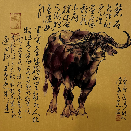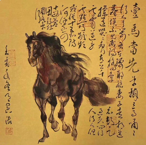 王君无意为专业诗人,而以新汉画雄立于艺术之林,其诗学造诣为其综合素养之体现。品其画作,以书为骨,以诗为魂,状物图貌,真情流淌。王君深谙诗理,在艺术创作与组织活动之馀,呕心沥血,镂月裁云,真体内充,英华外发,灵烟瑞霭,璨然可观。其诗多以意象胜,以真情胜,以朴素胜,往往景中寓情,境生象外:“鹤舞九天冲云志,霞飞七色壮诗怀。丹青有意寻才子,彩墨无边滚滚来。”(《观黄河湿地画派创始人石建勋画作有感》)此诗对石氏画境之形象描写,宏伟而绚烂,清逸而古雅。部分佳构辞微旨远,饶有理趣,又如芙蓉出水,清新自然:“花丛偶视蜜蜂喧,意在婀娜妍笑间。若是两情无约契,何来传粉过重山。”(《题蜜蜂采花照》)北方诗家为旧体诗词殊多不易,入声之消失为音律之和谐多增难度,旧体诗词有甚强之专业性,而今高校研究中国文学之专家,能为文理晓畅、意境圆融之韵语者十不一见,而艺术家于创作之馀为诗,其艰辛之程度可想而知。而今有些先生疏于吟咏,动辄非议格律之严苛,以不协音韵而自高,实为功力浅薄之故也,妙于诗者信笔为诗,入品入格。王君三馀为诗,力求风格之独特,意境之圆融,旨趣之幽微,而大多佳作谨遵旧体诗律之创作要求,珠圆玉润,对仗工稳。试读如下诗句:“首阳高树千秋绿,棠棣灵花几处红”(《观〈大唐情史〉有感》),化用伯夷叔齐让国隐居之故事与《诗经》中“棠棣之花”之典故,慨叹李唐王朝骨肉相残之史实,自然成对,旨趣幽深。“风荡幽萍栖白鹭,烟横寒水结青霜”,(《观林凡诗情书画有感》)以幽萍白鹭、寒水青霜等意象状绘林凡绘画艺术之意境,色彩绚丽,意象鲜活,情感饱和。诚然,即兴之章时为古体,一任激情之澎湃,纵意波涛之拍岸,体现诗人之个性特征,彰显一种探索精神。