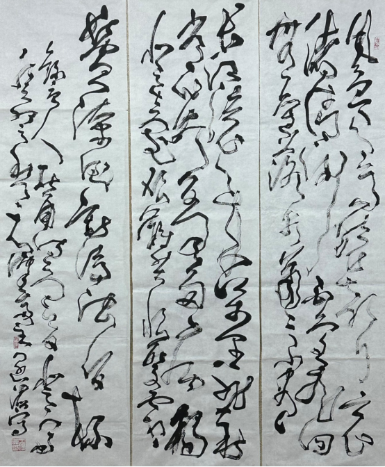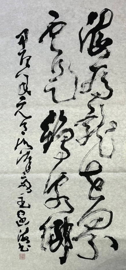 艺术继承难,创新尤难。王阔海以高标独举之创新精神而饮誉于时,其新汉画以壮阔之意境、飞动之体势、古雅之格调而新人耳目,震人心魄。 阔海之书能整体推进,潜心研习,各体皆能,以楷、行、隶、草、简为最,多蕴先秦英气、汉魏风骨、晋唐气象、宋元格调。观其所作,字态饱满,意象丰润,气息贯通。 阔海之真楷颇见功力,读其《文心雕龙·知音》《序志》等长卷立轴,刚健婀娜,萧散俊朗,清宁澹远,禅意盎然,盖知基高台厚、真气内敛也。 阔海心契老庄清静无为之道,心游姑射,思出物表,挥翰超尘,离笺入俗,能入能出,与天地参。至若点画挑钩之到位,撇捺横竖之往返,结字态势之奇正,聚散松紧之浑成,以期尽入道解。无逞强霸悍之姿,无矫揉造作之态,慷慨以任气,磊落以使才,振笔直遂,烟云满纸。 阔海丰情多才,精思善悟,精于画,耽于诗,妙于书,观其所作,书画交融,其楷隶与高华淡远之境偕,其行狎与飘逸灵动之韵齐,其大草与纵恣壮浪之势合,读其画而想见其人,良有以也。近年以来,阔海于大草又辟新境,豪荡清俊,萧散虚灵,与巨幅长卷呈化机之妙,侣觉斯而友右任,追旭素而尚青藤,唯意所之,唯情所至,中侧兼施,化线为点,生生之气仿佛冲破字距行间之束缚,腾挪跳荡,元气淋漓,饶有奔蛇走虺、风兴雨作之势,豪情逸气,倾泻无余,抒情高潮,跌宕起伏,写心,写意,写情,写志,灵心湛发,壮彩烟高。 ——李铎(中国书法家协会原副主席)