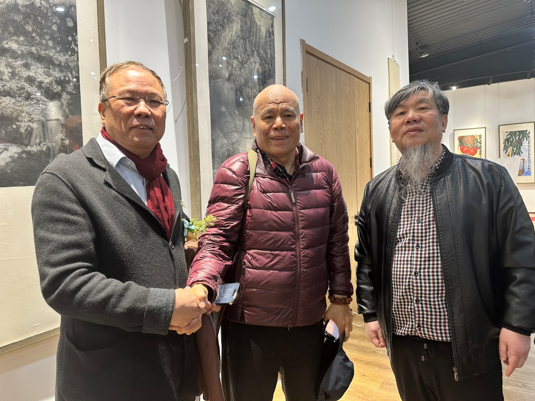 参展艺术家马海方(中)、邵璞(左)、策展人曾陆红(右)