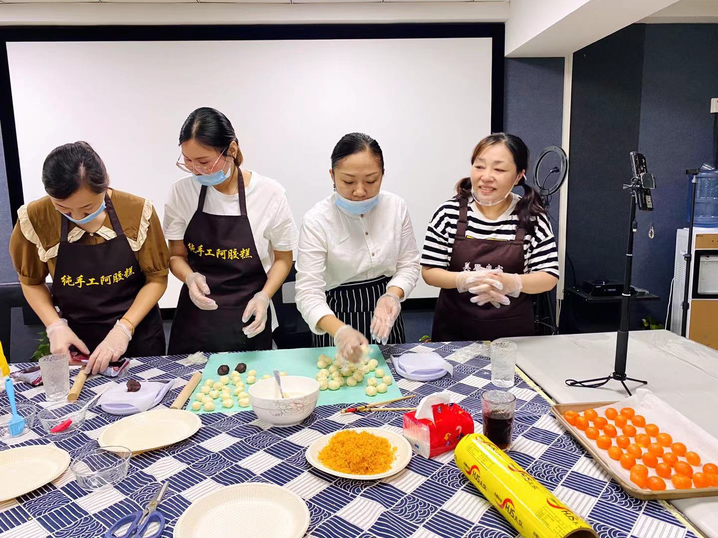 .18号下午2点 清江浦区西郊社区党群服务中心儿童之家热闹非凡,清江浦区爱美丽公益社负责人丁晓燕老师带领各个阶层人士做纯手工食品蛋黄酥!以此庆祝传统节日。