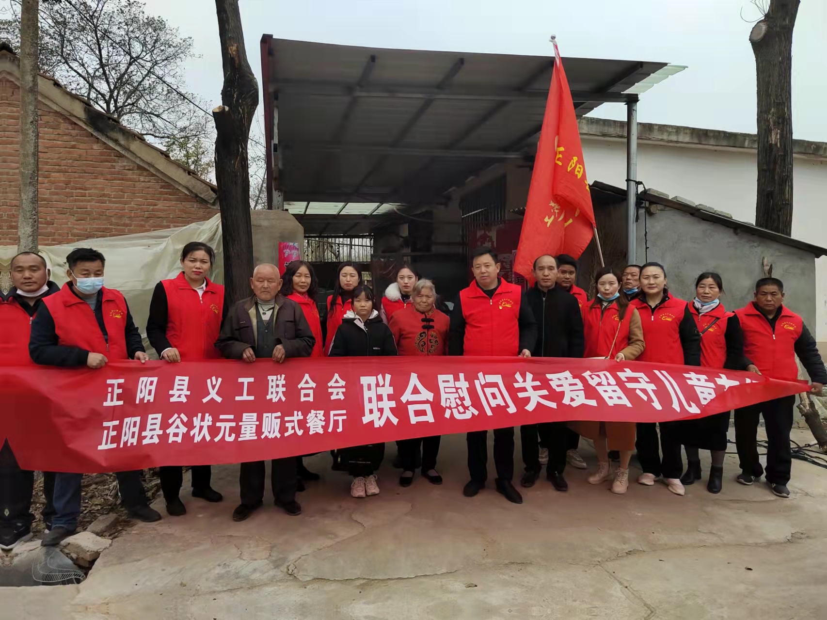11月22日,正阳县义工联合会的志愿者联合正阳县谷状元量贩式餐厅商家来到寒冻镇罗岗村、寒冻村开展“送温暖,关爱留守儿童”活动。
