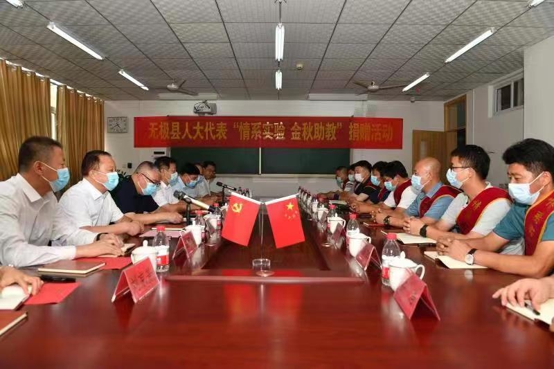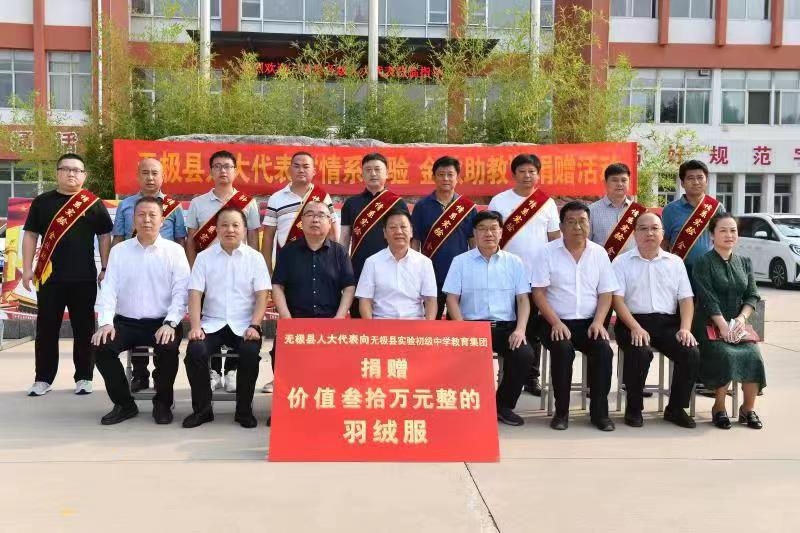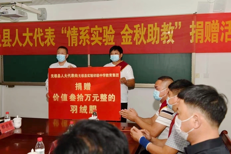 河北无极县组织开展“情系实验 金秋助教”捐赠活动 金秋送爽,丹桂飘香。为落实县委“全民支教”要求,展现人大代表责任担当。在河北省无极县人大常委会的积极组织下,各级人大代表积极响应,慷慨解囊,踊跃参加,捐资30万元购买羽绒服,定向捐赠无极县实验初级中学教育集团。9月9日,适逢教师节、中秋节“双节”前夕,县人大常委会组织的“情系实验 金秋助教”捐赠活动在县实验初中举行。县委副书记李建浅,县人大常委会主任马登坡、副主任彭彬、牛印同参加活动。 ![]() 捐赠仪式上,人大代表、爱心人士代表朱庆党向无极实验中学进行了捐赠。县委副书记李建浅向参加捐赠的人大代表颁发了荣誉证书和奖杯。 ![]() 在座谈交流中,人大代表表达了对教育事业的支持和教学质量攀升的期望,希望实验中学坚持“立德树人”理念,不断强化管理,实施素质教育,狠抓教师队伍建设,全面提升办学品味,为社会各项事业的进步培养更多的优秀人才。 县委副书记李建浅对县人大常委会和人大代表不折不扣落实县委决策的担当精神,关心无极教育的浓厚情怀和热心公益事业的传统美德给予了高度评价。 ![]() 县人大主任马登坡指出,县人大常委会通过开展“情系实验、金秋助教”捐资助学活动,为企业家代表搭建爱心助学的桥梁,展现了我县企业家代表高度的社会责任感,诠释“人大代表人民选,人大代表为人民”的使命担当。希望通过此次活动能带动更多企业、社会组织和各界人士参与捐资助学公益事业,用爱心和行动助力全县学子的成人成才。 ![]() 马登坡强调,要坚持党建引领,在立德树人上下功夫,要把立德树人做为教育的根本任务,不断强化理想信念教育,深化思想政治教育,抓好综合素质教育。要强化师资力量,在教育教学上下功夫,健全完善教师培养机制,征集一批优秀教师作为首席教师、首席班主任,带动青年教师的专业成长,为教育事业发展提供强大人才支撑。要减负提质并行,在人民满意上下功夫,严格落实“双减”政策,不断提高教育教学、作业管理及课后服务水平,切实减轻学生和家长负担。